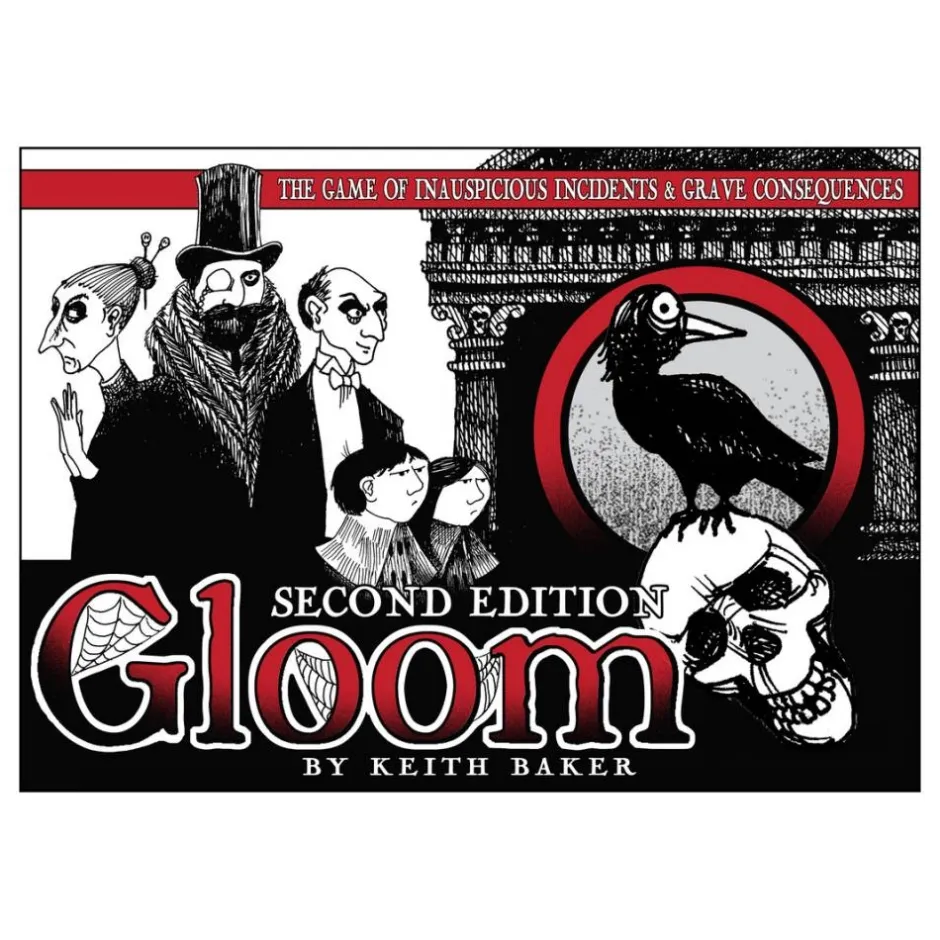 I Kortspelet Gloom Tar Du Kontroll Over Odet For En Excentrisk Familj Av Missanpassade Individer Och Misantroper. Spelets Mal Ar Ett Ledsamt Men Enkelt: Du Vill Att Dina Karaktarer Ska Genomlida De Varsta Tankbara Tragedier Innan De Moter En Valfortjant Frid I Form Av Doden. Du Spelar Ut Horribla Incidenter Som ”Pursued By Poodles” Eller ”Mocked By Midgets” Mot Din Karaktar For Att Sanka Deras ”Self -Worth Score”, Samtidigt Som Du Forsoker Ge Din Motstandares Karaktarer Lyckliga Handelser Som Giftermal Och Liknande For Att Poang Ska Adderas. Spelaren Med Det Lagsta Poangen I Family Value, Vinner.