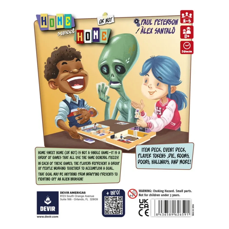 I Det Kooperativa Bradspelet Home Sweet Home (Or Not) Maste Spelarna Samarbeta For Att Slutfora Malen Som Anges I Ett Av De Fem Uppdragen Som Ingar I Spelet. Varje Uppdrag Kraver En Annorlunda Layout Av Huset, Som Ar Konstruerat Av Olika Rum Sammankopplade Med 3D-Tradorrar.