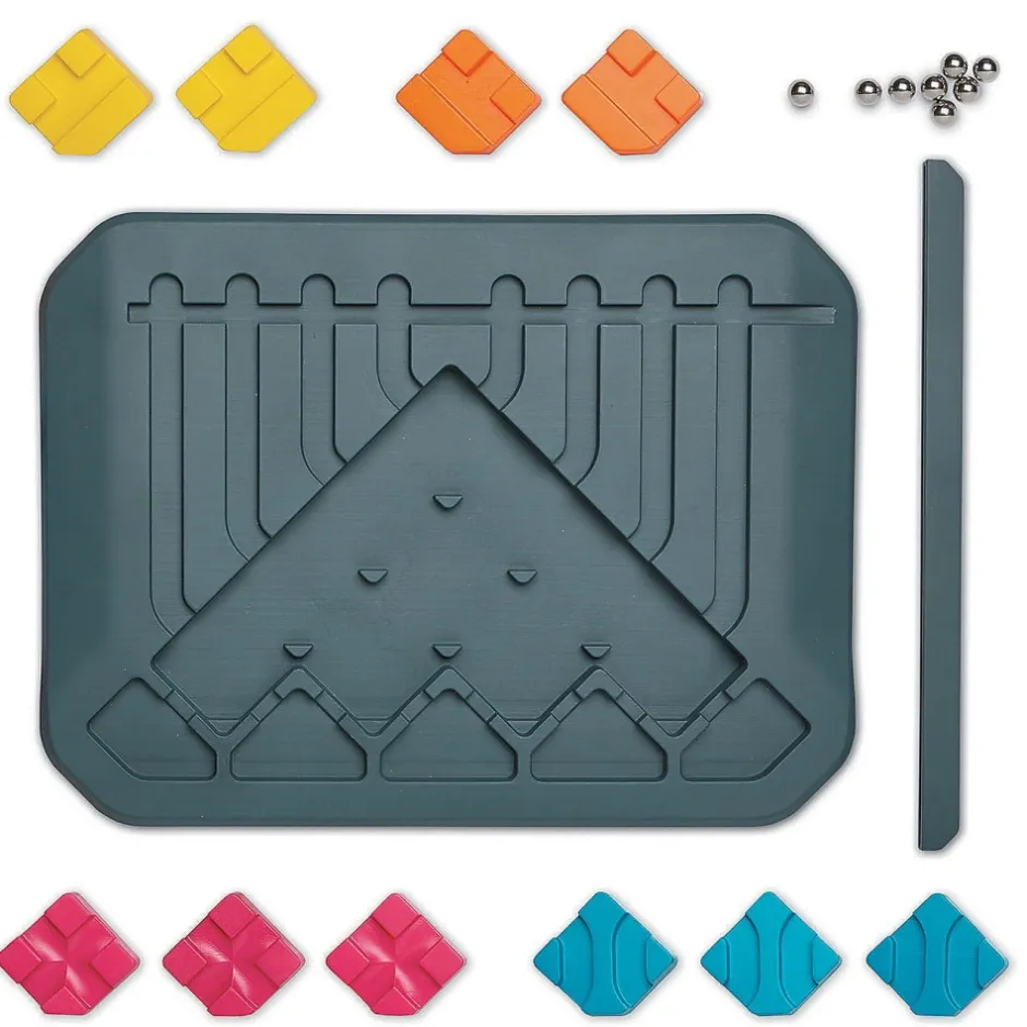 Det Ar Flervags Kullabyrint Med 64 Forbryllande Utmaningar!Valj Ett Kort For Att Se Ditt Pussel Och Placera De Flerriktade Brickorna Pa Bradet. Slapp Stalkulorna For Att Se Om Du Landar Pa Dina Mal. Om Du Ar Utanfor Basen, Flytta Plattorna Tills Dina Kulkretsar Ger En Perfekt Landning! Det Ar Logik, Strategi Och Ett Hjarnspel Allt I Ett!