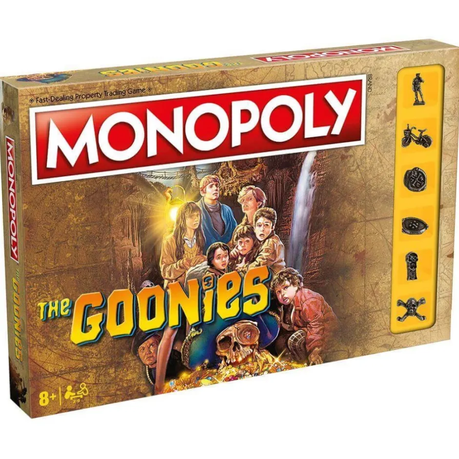 Folj Med Mikey, Brand, Andy, Mouth, Data, Chunk Och Sloth I Denna Aventyrliga Twist Pa Det Snabba Spelet Om Fastighetshandel!Folj Med Pa Ett Haftig Aventyr For Att Hitta One-Eyed Willys Rikedomar Nar Du Besoker Ikoniska Platser I Och Under Astoria, Oregon. Baserat Pa Den Populara 80-Talsfilmen, Hang Med Goonies Nar De Navigerar I Farliga Fallor, Overlista Fratellis Och Raddar Goondocks I Den Har Specialdesignade Utgavan Av Monopoly.