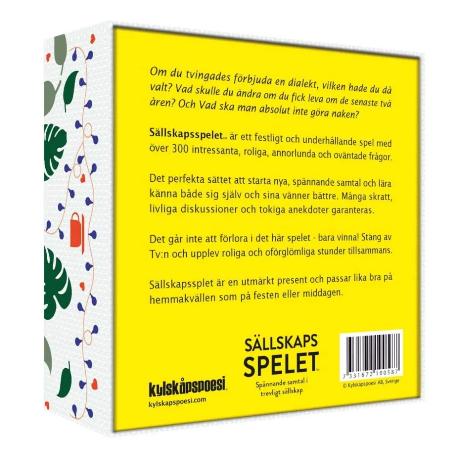 Sällskapsspelet Ar Ett Festligt Och Underhallande Spel Med Over 300 Ovantade, Roliga, Knasiga Och Intressanta Fragor. Det Perfekta Sattet Att Lara Kanna Bade Sig Sjalv Och Sina Vanner, Familj Och Kollegor Pa Ett Annorlunda Och Kul Satt Dar Manga Skratt, Annorlunda Fragor Och Tokiga Anekdoter Garanteras. Spelet Passar Lika Bra Pa Hemmakvallen Som Pa Festen Eller Middagen.