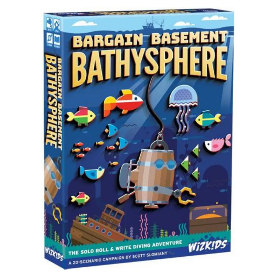 Bargain Basement Bathysphere, Designades Till 2018 Ars Solo Print-And-Play-Tavling Pa Bgg, Ar Ett Kampanjliknande Roll-And-Write-Spel Med Legacy-Inslag; Spelet Blir Mer Komplext Nar Du Arbetar Dig Igenom Kartorna.